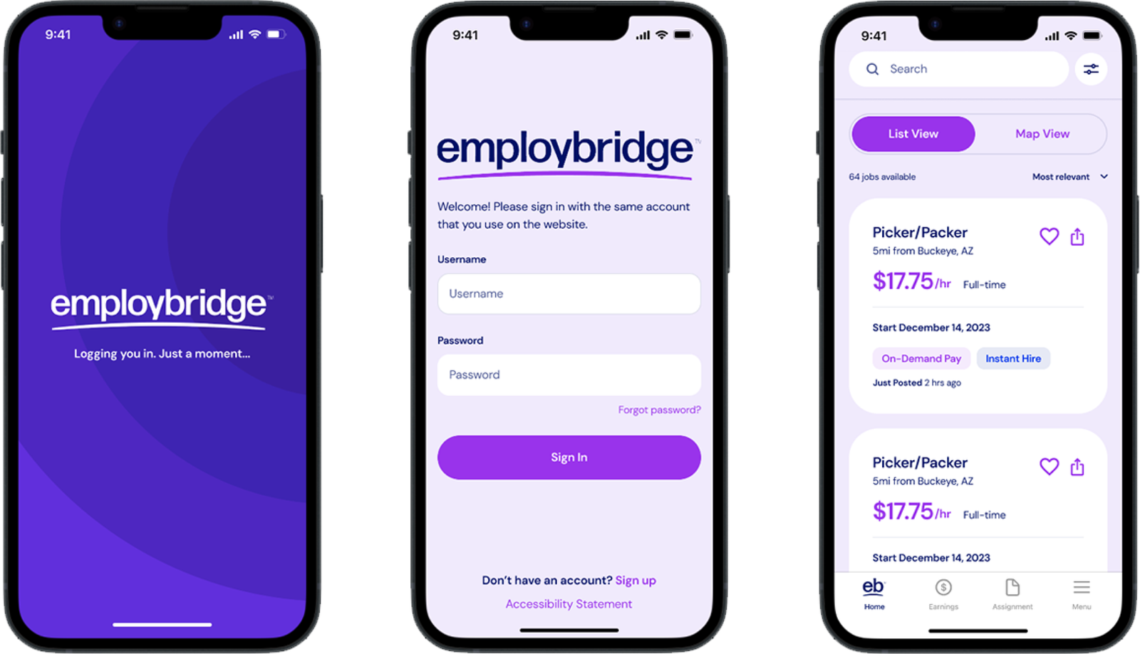 Unifying multiple mobile apps under the EmployBridge name, into one single mobile app experience.